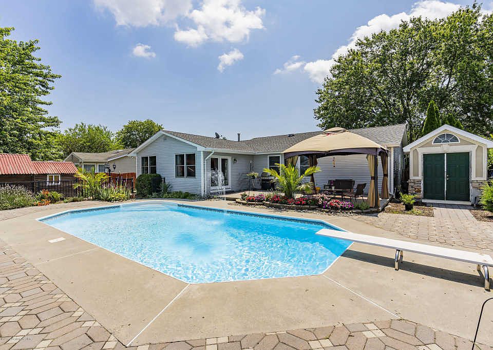 WELCOME HOME! From the moment you drive up to this 3 bed 1 1/2 bath home you will notice the impeccable lawn, beautiful landscaping,the double wide concrete driveway and the culturered stone front. As you step inside begin to enjoy the mosaic tiled foyer and the large living room that the whole family will find comfort in. The newly renovated kitchen/dining area boasts newer stainless steel appliances, immaculate brand new ceramic flooring, a breakfast bar, maple cabinets, and a wonderful dry bar. Venture through the french doors to step into the yard to enjoy your staycation of a built in pool, pavered patio, luscious landscaping and garden beds, a shed for all you needs and a log cabin, she shed-man cave or club house waiting for you. Laminate flooring and crown molding throughtout