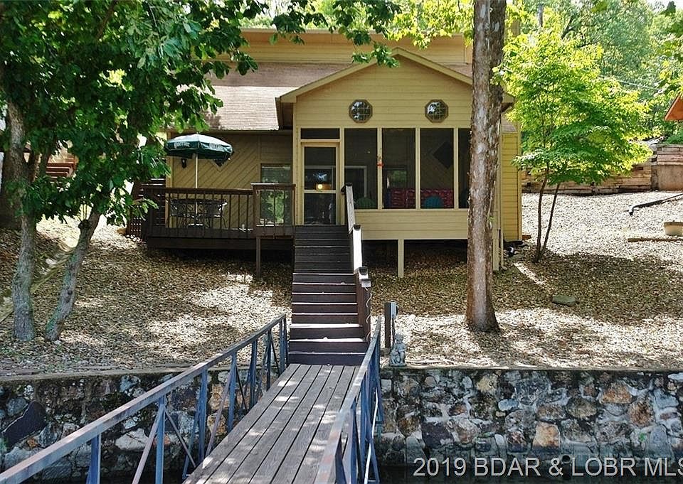 Top Priorities definitely covered here--COVE LOCATION and WATER DEPTH! This 3 bedroom, 2 bath lakefront home has given this family many days of lake fun!! This home features 2 guest bedrooms and bath on the walk-in level, with the main level living in the open area below. Vaulted ceiling, wood burning fireplace, screened lakefront porch, it comes furnished and ready for your days of lake fun to begin!! Includes 1-well dock (slip is 10'x24'), PWC lift, deep water underneath--and a gentle walkway there!! Great cove for kicking back and relaxing, this home is ready for YOUR lake leisure days, see now.
