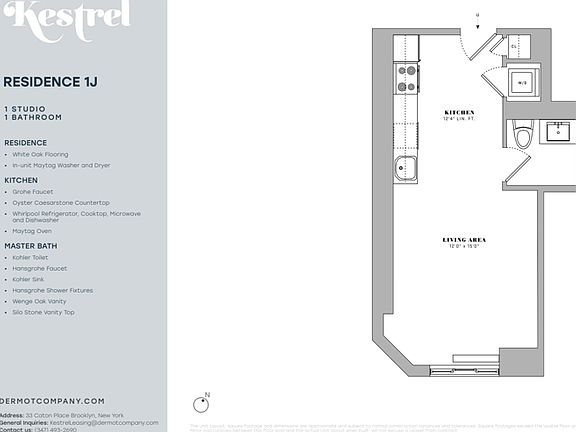 *Reduced Security deposit of $1000 to well qualified applicants!* *Offering 3 months of free amenities for same- day applications!* Welcome to Unit 1J at The Kestrel, a bright and modern studio home offering stylish living in the heart of Windsor Terrace. This residence features a well-proportioned layout with contemporary finishes, an open kitchen with stainless steel appliances, and large windows that invite in plenty of natural light. The bedroom provides a quiet and cozy retreat, while the living area is perfect for relaxing or entertaining. At The Kestrel, you'll enjoy a full suite of thoughtfully curated amenities, all just moments from Prospect Park and surrounded by the charm and ease of Brooklyn living. *Modern Living in Brooklyns Finest Design* The Kestrel is the first Brooklyn building designed by award-winning Luca Andrisani Architects, setting a new standard for modern luxury. This eight-story, 126-unit residence offers a lifestyle of grace, vibrancy, and ease, combining striking architectural design with thoughtful interior details. Residents enjoy expansive layouts, high-end finishes, and large windows that fill each home with natural light, creating a warm and inviting atmosphere. *Convenience* The Kestrel provides an effortless living experience, offering a 24-hour attended lobby for both security and convenience. The lobby also features cold storage, ensuring grocery and food deliveries stay fresh until residents retrieve them. On-site management and maintenance staff are available to address any needs, making city living seamless and stress-free. With easy access to multiple subway lines, commuting is convenient, allowing residents to experience the best of Brooklyn and beyond with ease. *Dermot Ignite Club & Community* The exclusive Dermot Ignite club at The Kestrel brings residents together through a curated selection of events and experiences. From engaging social gatherings to wellness-focused programs and creative workshops, Dermot Ignite fosters a connected and lively community. Residents have access to an active calendar of events, ensuring there is always an opportunity to learn, connect, and unwind within the building. *Dermot Ignite Lounge & Play* Designed as an extension of home, the residents' lounge at The Kestrel provides a welcoming space for relaxation and entertainment. Whether hosting friends, working remotely, or simply unwinding after a long day, the lounge offers stylish seating, entertainment options, and work-friendly areas. A dedicated game room and lounge further enhances the community experience, providing an interactive and engaging space for residents to enjoy. *Dermot Ignite Rooftop* The rooftop at The Kestrel is a peaceful retreat above the city, offering stunning Brooklyn skyline views and inviting outdoor seating areas. Residents can enjoy al fresco dining with BBQ grills, host intimate gatherings, or relax with a book while taking in the picturesque surroundings. This beautifully designed space brings a refreshing escape from the fast-paced city life, making it a perfect spot for any time of day. *Wellness & Recreation* The Kestrel prioritizes health and wellness with a state-of-the-art fitness center featuring premium equipment for strength training and cardio workouts. A dedicated yoga and movement studio provides a tranquil space for personal practice or guided classes. Residents can take advantage of wellness programming that supports an active and balanced lifestyle, creating an environment that encourages both physical and mental well-being. *Our Neighborhood* Situated in Windsor Terrace, Brooklyn, The Kestrel is surrounded by the charm of a residential neighborhood while offering easy access to the vibrant energy of the city. This peaceful enclave is known for its tree-lined streets, historic brownstones, and welcoming community feel. Just moments away, residents can explore Prospect Park, with its scenic trails, open green spaces, and cultural attractions like the Prospect Park Zoo and the Brooklyn Botanic Garden. Images are from the same apartment on a different floor, representative of layout and finishes.