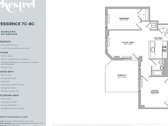 *Reduced Security deposit of $1000 to well qualified applicants!* ** OFFERING 6 MONTHS FREE AMENITIES** Welcome to Unit 7C at The Kestrel, a stunning 2-bedroom, 2-bathroom home offering generous space, contemporary style, and sweeping views from one of Windsor Terraces premier addresses. With a thoughtfully designed split-bedroom layout, oversized windows, and modern finishes throughout, this residence is perfect for those seeking both elegance and functionality just steps from Prospect Park. Key Features: 2-bedroom, 2-bathroom split-bedroom layout for optimal privacy Expansive open-concept living and dining area Oversized windows providing abundant natural light and scenic views Modern kitchen with stainless steel appliances and sleek cabinetry Primary bedroom with en-suite bathroom and generous closet space Spacious second bedroom with excellent light and flexibility Two contemporary bathrooms with stylish finishes Hardwood flooring throughout Central heating and air conditioning Access to The Kestrels full suite of amenities Modern Living in Brooklyns Finest Design The Kestrel is the first Brooklyn building designed by award-winning Luca Andrisani Architects, setting a new standard for modern luxury. This eight-story, 126-unit residence offers a lifestyle of grace, vibrancy, and ease, combining striking architectural design with thoughtful interior details. Residents enjoy expansive layouts, high-end finishes, and large windows that fill each home with natural light, creating a warm and inviting atmosphere. Convenience The Kestrel provides an effortless living experience, offering a 24-hour attended lobby for both security and convenience. The lobby also features cold storage, ensuring grocery and food deliveries stay fresh until residents retrieve them. On-site management and maintenance staff are available to address any needs, making city living seamless and stress-free. With easy access to multiple subway lines, commuting is convenient, allowing residents to experience the best of Brooklyn and beyond with ease. Dermot Ignite Club & Community The exclusive Dermot Ignite club at The Kestrel brings residents together through a curated selection of events and experiences. From engaging social gatherings to wellness-focused programs and creative workshops, Dermot Ignite fosters a connected and lively community. Residents have access to an active calendar of events, ensuring there is always an opportunity to learn, connect, and unwind within the building. Dermot Ignite Lounge & Play Designed as an extension of home, the residents' lounge at The Kestrel provides a welcoming space for relaxation and entertainment. Whether hosting friends, working remotely, or simply unwinding after a long day, the lounge offers stylish seating, entertainment options, and work-friendly areas. A dedicated game room and lounge further enhances the community experience, providing an interactive and engaging space for residents to enjoy. Dermot Ignite Rooftop The rooftop at The Kestrel is a peaceful retreat above the city, offering stunning Brooklyn skyline views and inviting outdoor seating areas. Residents can enjoy al fresco dining with BBQ grills, host intimate gatherings, or relax with a book while taking in the picturesque surroundings. This beautifully designed space brings a refreshing escape from the fast-paced city life, making it a perfect spot for any time of day. Wellness & Recreation The Kestrel prioritizes health and wellness with a state-of-the-art fitness center featuring premium equipment for strength training and cardio workouts. A dedicated yoga and movement studio provides a tranquil space for personal practice or guided classes. Residents can take advantage of wellness programming that supports an active and balanced lifestyle, creating an environment that encourages both physical and mental well-being. Our Neighborhood Situated in Windsor Terrace, Brooklyn, The Kestrel is surrounded by the charm of a residential neighborhood while offering easy access to the vibrant energy of the city. This peaceful enclave is known for its tree-lined streets, historic brownstones, and welcoming community feel. Just moments away, residents can explore Prospect Park, with its scenic trails, open green spaces, and cultural attractions like the Prospect Park Zoo and the Brooklyn Botanic Garden.