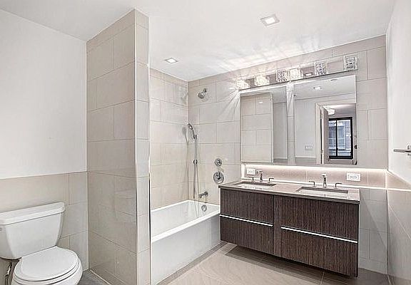 Virtual Tour Available! Gorgeous East facing Two Bedroom / Two Bath with Washer and Dryer IN-UNIT Come and tour the first Brooklyn building from award-winning Luca Andrisani Architects, the eight-story, 126-unit modern residence offers a lifestyle of grace, vibrancy, and ease. The 24-hour attended lobby, offering cold storage, provides security and convenience. For the days when venturing out for a loop around the park isn't feasible, a fully-equipped gym takes care of daily fitness quotas; there is also a space for private exercise classes. An on-site garage ensures consistent access to parking. The pet-friendly building has a pet spa and dog run! No Broker Fee
