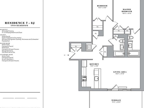 Light and Spacious Two-bedroom apartment has a large terrace off the Living room. Features include Condo Like Finishes including White oak flooring, Oversized windows, Open kitchen with stainless steel appliances, breakfast bar and Oyster Caesarstone countertops, 2 Bathrooms with Hansgrohe shower fixtures, in-unit Maytag washer and vented dryer and Walk-in closets. The Kestrel is a Luxury Full-Service building only 1 BLOCK FROM PROSPECT PARK. Easy Access to F, G and Q trains. Pets Welcome. No Broker Fee