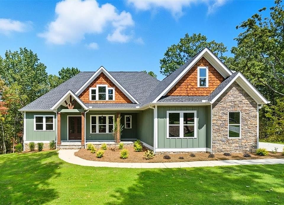 Discover your dream home with this stunning Craftsman-style residence, custom-built to blend timeless charm with modern luxury - NEW CONSTRUCTION, with an late August completion date. Nestled on a private, wooded lot, this meticulously designed home defines quality with carefully-selected materials, finishes and colors. The main level boasts an open-concept design, seamlessly connecting the living areas with high-end finishes and designer selections throughout. Step inside to find a spacious and inviting layout featuring a Family Room, with cathedral ceiling and stone fireplace, perfect for entertaining or everyday life. Double doors lead to the spacious covered deck with a wide, gorgeous view of the wooded yard. This plan offers a versatile Dining/flex room that can serve as an Office or Playroom. The home’s luxurious features include a chef inspired kitchen with top-of-the-line appliances, exquisite cabinetry, huge island, walk-in pantry and beautiful countertops, along with stylish bathrooms, detailed woodwork and many upgrades. This split bedroom home features the Primary Suite and two secondary Bedrooms on the main level. The Primary Bedroom offers a peaceful view of the wooded backyard, tray ceiling, ceiling fan and recessed lighting. The luxurious Bathroom features a separate freestanding tub and seamless shower along with beautiful vanity cabinetry and large walk-in closet. Upstairs, in addition to a 4th Bedroom and full bathroom, you'll find a generous Bonus Room, providing added flexibility to suit your lifestyle. Upgrades in this home are plenty, and include engineered hardwoods (no carpet), spray foam insulation, tankless water heater and tiled showers in every bathroom. On the covered back porch and covered patio, enjoy the serene beauty of your 3+ acre, private, peaceful, wooded lot, offering a private, peaceful retreat in a quiet neighborhood. There’s plenty of room to grow with a full, unfinished, walkout basement that opens to a covered patio. Ductwork installation allows for future 9’ ceilings, and this basement is stubbed for a bathroom and bar/kitchen. Bonus 3rd garage door in this basement level. Oversized, 2-car garage at kitchen level offers storage space and walk-through door. Experience the best of both worlds—modern upgrades and a charming, craftsman aesthetic—in this exceptional home, built by Builder Solutions LLC. Don't miss out on the opportunity to make it yours!