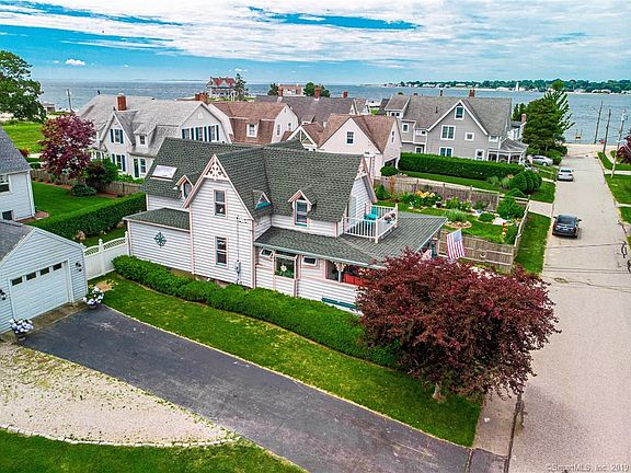 Eastern Point beach residence beautifully renovated in 1995 with charm and comfort for year round living. Full relaxation can be enjoyed while sitting on the porch viewing the serene riverfront and watching the many passing ships. Stepping inside you enter into a spacious open area for a sitting room and dining area complete with original built in hutch. The living room is set in the front of the main level. Notice the beautiful wood trim in both rooms. The kitchen has been enlarged and offers distant views of the water while sitting at the cozy eating area. There is a door that leads out to the private backyard. A half bath completes the main level. The upper level offers three bedrooms all with wood trim and pocket doors and plenty of windows to capture the breeze. The front bedroom has a roof balcony with amazing water views. The upper full bath has been enlarged with a built in desk/vanity, dressing area, tub and separate shower. Back to the lower level there are two rooms finished for living space created when planning the renovations and a laundry room area plus space for storage. The detached garage is off the private driveway. There is a whole house generator on auto weekly testing. The house and garage roof were replaced in 2012. Other renovations to note, vinyl siding, windows throughout, Burnham furnace, updated electrical with 200 amp service, and updated plumbing. Walk to the neighborhood beach, local marinas or play a round of golf a stroll away.