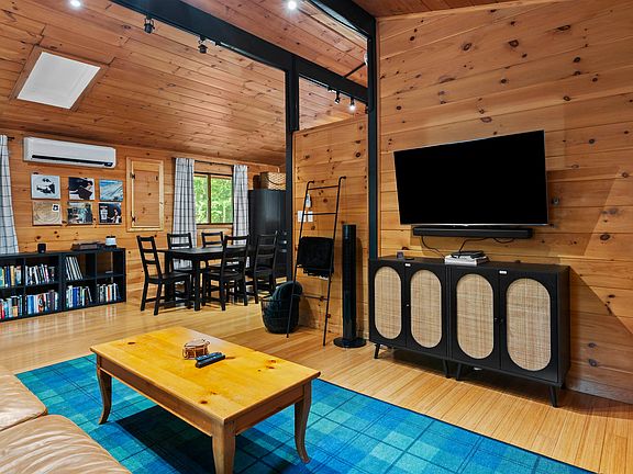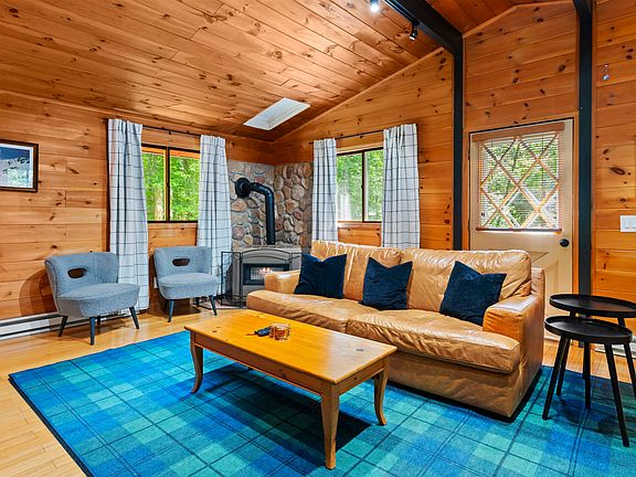 This property is a thriving AIRBNB with a stellar 5-STAR rating, FULLY FURNISHED offering high-quality furnishings, including brand-name rugs, newer furniture, bedding and extra linens. Discover this exceptional mountain chalet in Bartlett, offering an incredible opportunity for primary living, a vacation retreat, or a high-performing investment! The main level boasts an inviting open-concept layout that seamlessly connects the fully equipped kitchen, living room, and dining area. Unique custom live-edge wood slab counters bring a touch of rustic elegance to the space. Throughout the main floor, the warm pine tongue & groove walls and exposed beams create a classic mountain home ambiance, enhanced by abundant natural light. Step outside to enjoy the two decks; the front deck offers a quiet escape, while the spacious back deck is ideal for grilling and entertaining. The lower level features three bedrooms, each equipped with mini-split systems for both heating and AC. Additionally, there is a newly renovated bathroom on this level. The two-car insulated garage has a wood stove and plenty of storage space including metal storage lockers. Roof replaced 2023. Adding to its appeal, the location is truly prime, with just a short drive to popular attractions such as Storyland, Attitash Ski Resort, and N Conway. This chalet offers a remarkable combination of comfort, convenience, and IMMEDIATE income potential beginning in October!
