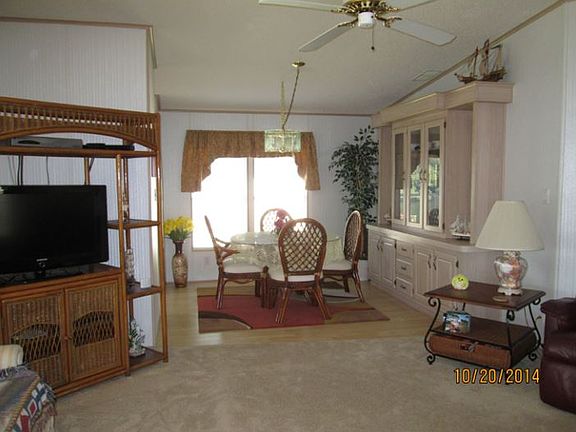 This well-maintained waterfront home has almost 1,200 square feet of living space. It comes tastefully furnished and move-in ready. The home features a “dream kitchen” with lots of counter and cabinet space, spacious master bedroom with king-sized bed, large closet and extra built-in drawers. Spare bedroom also has king-sized bed. Washer/dryer are conveniently located within home. Outside, the home has been upgraded with vinyl siding, mature landscaping and a storage shed that includes tools. Price also includes golf cart and nice dock! Purchase only the home and lot rent is $765 monthly or purchase the share for $77,000 and monthly fee is only $250. Monthly fee includes trash removal, recycling, water/sewer, lawn mowing and edging. Orange Harbor is an over age 55 resident owned community located close to shopping, restaurants and beaches. Come see today!