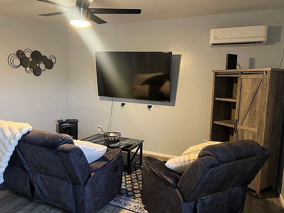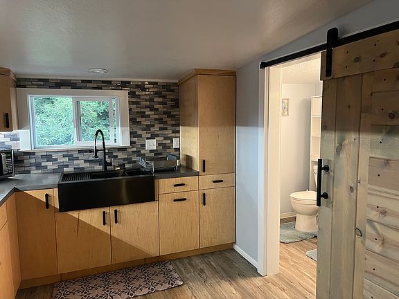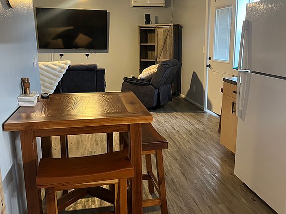 Very Clean, Modern 1-bedroom apartment for rent. There are stairs to get up to the apartment, this is not handicap accessible. Fully furnished with linens, dished, cookware. Everything paid water, sewer, garbage, propane, electric, WiFi. Gas stove, on-demand hot water, in-unit washer and dryer, two tv's with Amazon fire stick. Everything is included, you have no other cost of living at this apartment. This apartment is above a working shop in sunny Blue Lake ca, there is some very light noise during the day. Shared gravel yard, parking, behind locked gate at night. Please no pets we have chickens in back yard. Month to month rental,