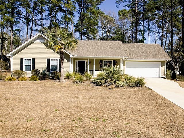 Lovely 3 bedroom, 2 bath ranch on .35 acre lot in a peaceful, serene area. You are greeted by the sitting porch perfect for your rocking chairs. Foyer leads you to a spacious great room-dining room combination with cathedral ceilings, wood laminate flooring, granite faced wood burning fireplace, updated ceiling fan and sliding glass doors that lead to a significant screened in porch. Gourmet kitchen boasts maple and black cabinets, double stainless steel sink, Whirlpool dishwasher and stove, Frigidaire si de by side refrigerator, tile floors and a sizeable pantry. Large master bedroom with cathedral ceiling and walk in closet. Oversized two car garage with automatic opener with coded key pad. Call Laura Dahl 843-524-1617. MLS #118764Ample storage above the garage.