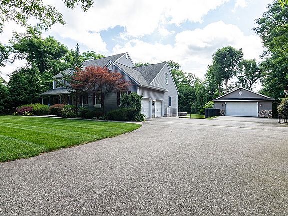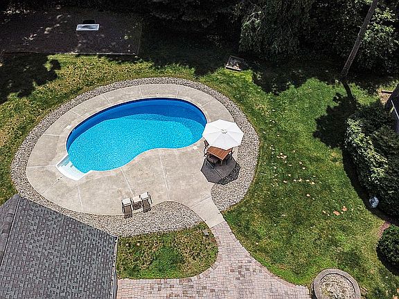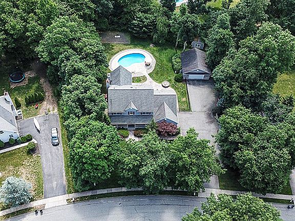 Welcome home to your private, "stay-cation" paradise! Magnificent, custom center hall colonial in park-like setting, complete with heated IG pool, large patio and composite deck for entertaining + firepit for roasting marshmallows w friends and family or for more intimate gatherings. The elegant interior boasts 2 FP's, coffered ceilings, custom woodwork throughout, a large, gourmet eat-in kitchen, formal dining room w French doors and stately family room w high ceilings, library-style built-ins and wood burning fireplace. The bonus detached, 2-car heated garage is ideal for car, bike or boating enthusiasts. New hot water heater (2020); new attic fan; new pool liner and pump (all 2019); newer Septic (2016) - last maintained Feb '20; underground lawn sprinkler; underground utilities; kitchen appliances stay.