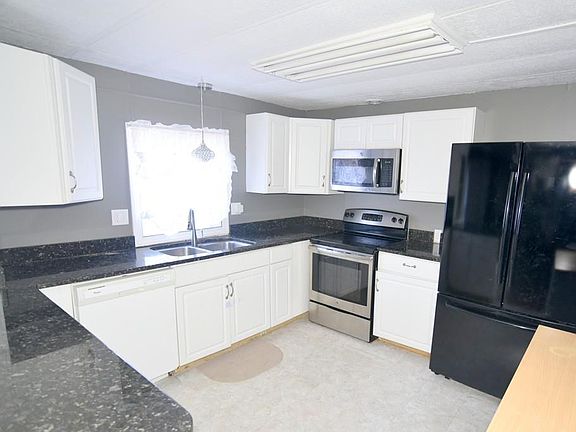 Pinetree Village, Carver, a resident owned community in a general access - no age restricted park. Buyer must obtain park assoc. approval to purchase. Spacious double wide offers bedrooms on both ends for privacy. Master suite with private bath and 2 additional bedrooms with full bath. Vaulted ceiling living room opens to kitchen with granite counters and upgraded appliances, dining room with built in cabinet and slider to patio. There is a separate laundry area. Application to park, credit and background check to be completed with 72 hours of accepted offer. There is also a one time $100 buy in fee required.