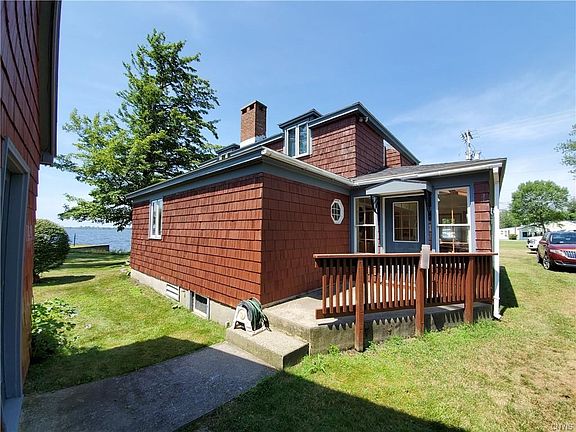 Great Location!! Golf in the morning & boat in the afternoon. Enjoy year-round living in this adorable cottage that sits between the shores of Lake Ontario on beautiful Sandy Pond and just feet from the first tee at The Elms Golf Course. Built in 1983 this cottage features over 1900' of living space with four bedrooms and 2.5 baths. The front to back eat-in kitchen features lots of counter space and all appliances convey along with 1st floor washer/dryer. Also included is a living room with wood burning fireplace, master suite with large bedroom, full bath and walk-in closet and a beautiful heated sun porch with lots of windows and fresh air. The upstairs includes 3 bedrooms and a full bath. The exterior features an over-sized 2.5 car garage with shop space, electric and water. The shoreline offers a solid seawall for dock installation & location for canoe/kayak launching. Ready to move in and enjoy!