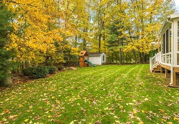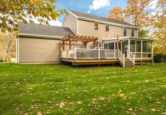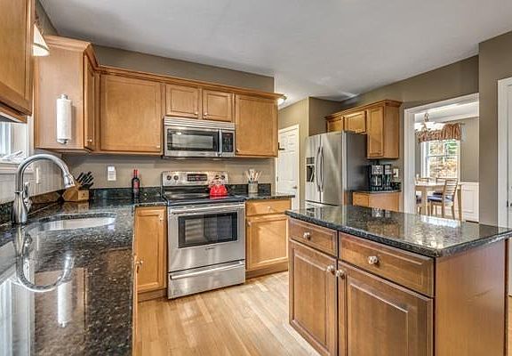 Elegant open concept 4 Bed/2.5 Bath New England colonial in desirable Chestnut Ridge neighborhood. Custom cabinet kitchen enhanced with granite counters, stainless steel appliances, and center Island. Kitchen opens to spacious family room adorned with a gas fireplace and carpeting. Vaulted master suite with walk in closet and lovely master bath. Gorgeous hardwood flooring through the kitchen, dining room, living room, and bedrooms. Beautifully finished lower level offers plenty of space for recreation, media, or exercise. French doors from kitchen open to a lovely new sunroom! Relax on your deck with hot tub and enjoy a beautiful level landscaped lot with an irrigation system for the perfect lawn.
