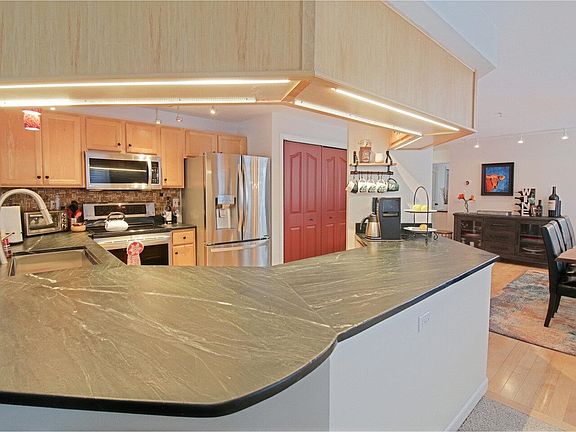 Sun-drenched and move-in ready, this immaculate 2-bedroom, 2-bath Claire Pointe condo offers easy one-level living on the main floor of the building with seasonal views of Lake Champlain. Enjoy a thoughtfully upgraded kitchen featuring custom maple cabinets, soapstone countertops, and stainless-steel appliances. This opens to a spacious dining room perfect for entertaining. Relax by the beautifully appointed gas fireplace in the living room or unwind on the back deck with custom shades and lake views. Large bedrooms including the primary suite with double closets, a jetted tub, and dual showers. You'll find ample storage, newer flooring, and updated lighting - every detail has been considered. Your car will be safe in the underground parking garage and there is plenty of guest parking plus some EV charging stations. This pet-friendly, investment-friendly building is just steps from the bike path and blends lakeside living with modern convenience all in the New North End of Burlington. Just minutes to Malletts Bay, city beaches, parks, and downtown.