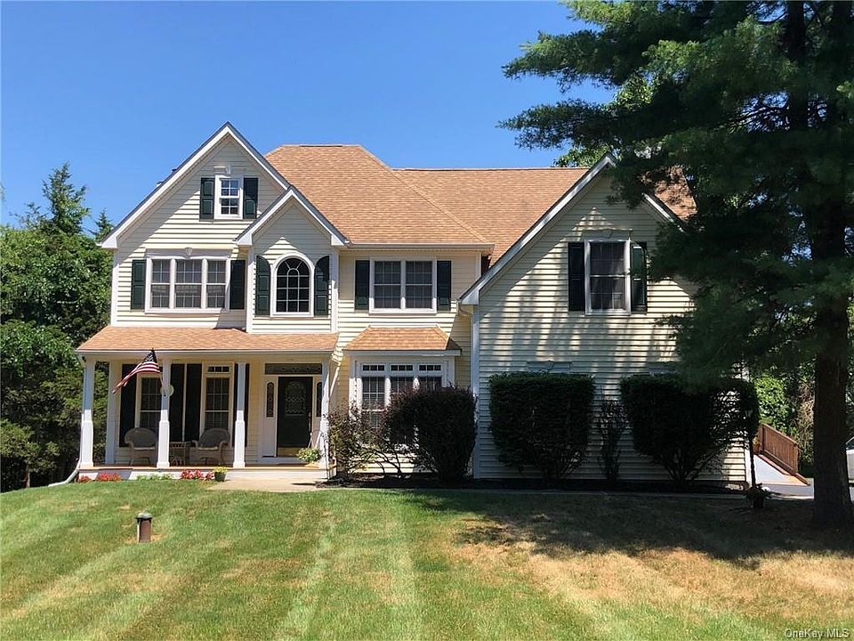 Beautiful Colonial offers a very pretty, private setting! Relax and admire the gorgeous property from the covered front porch. Great Family Rm w/high vaulted ceiling, gorgeous arched window & Fireplace. Open-concept Kitchen offers a spacious dining area w/built-ins, lots of cabinets & counter space. Off the family rm is a wonderful Den with an arched window, cathedral ceiling and cozy wood-burning stove. Lovely Dining Rm w/custom wainscoting. 1st Floor Full Bath, Study/Office. WOW, this home has a Man Cave too! Hardwood & Crown molding as seen. Lovely en suite Master BR features a tray ceiling, W/I closet, jetted tub w/arched window above, wide shower, 2 vanities. Three more BR's, one of which is enjoyed as a Library/TV Rm, full dual sink hall bath. Relax on the patio & enjoy the firepit! Central Air, large Laundry & Mud Rm. Special home offers a Handicap Ramp, Invisible Dog Fencing, Walk-Out Basement. Level, newly sealed driveway. 10 min to Metro-North (Harlem Line) & Taconic, more!
