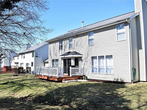 Where do YOU want to be this SUMMER? Someplace you can WALK to the SWIMMING POOL, to the LAKE, PLAYGROUND, COMMUNITY EVENTS? Then THIS IS THE ONE! This home is a TRUE 5 BEDROOM home (all on the UPPER level). ENJOY the COVERED FRONT PORCH, great for relaxing or conversing with the neighbors. Enter the OVERSIZE foyer to view this CLEAN, UPDATED, freshly PAINTED home. FORMAL living and dining rooms. On those cool evenings, cozy up to the WOOD BURNING FIREPLACE in the FAMILY ROOM flanked by CUSTOM BUILT-INS. The OPEN FLOORPLAN features a KITCHEN with CHERRY cabinets, SS BOSCH dishwasher, pantry and BREAKFAST ROOM with a NEW slider at the BAY WINDOW leading to the NEW MAINT FREE DECK. Main floor LAUNDRY with wall cabinets and utility sink. PARTIAL FINISH in LL with REC RM w/LAMINATE floor. NEW HVAC system (High Efficiency Furnace). More GREAT finds: NEWER roof, NEST thermostat, SMART garage door opener, newer toilets and fixtures, NEW lights, JETTED TUB, crown molding. MAKE IT YOURS!