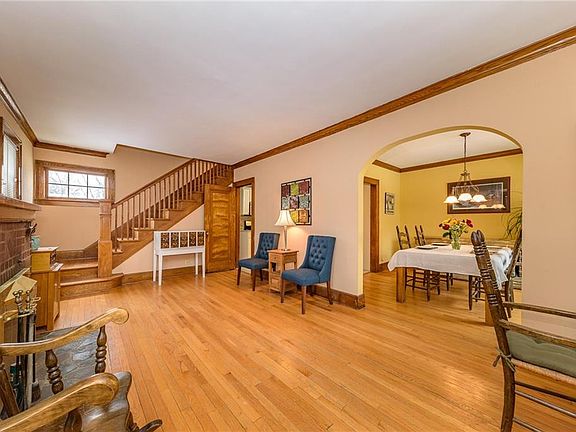 Enter through the foyer of this colonial style property & you will begin to feel right at home! The entire home features original hard wood flooring & decorative molding throughout. The living room is spacious, but is also a great place in the home to be cozy & warm by the fireplace. Make your way to the formal dining room that glistens & shines from the bay windows this room features. Off to the kitchen, and you will notice recessed lighting, beautiful ceramic flooring, granite counter tops & charming stone tile back splash. The family room is housed on the first level & it features a sliding door with entry to the rear of the home. Up on the second level, you will find 3 generously sized bedrooms, & 1 full bath, recently remodeled w/custom cabinetry, & quartz top vanity. There is a large privacy fence surrounding the backyard that features a patio with ample space for entertaining & much more! This home is ready for you to buy!