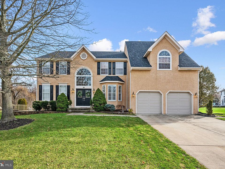 Welcome to the sought after community of the Ridings At Mayfair in Marlton. This beautiful Imperial Model not only has an outstanding size (almost 3,000 sq. ft.) and layout it also hosts outstanding features. The lot was a premium lot backing up to Township Preserved Green Space. The open floor plan is wonderful for formal or everyday living. As you enter the double door entry into the 2 story foyer with huge Palladian window & turned staircase you're greeted by wood look handscraped tile floors that run through most of the first floor. The living room to the left extends into the dining room both with Plantation shutter window treatments. Perfect for entertaining. To the right of the foyer is a private office, playroom, whatever your needs. Straight back from the foyer you pass a beautiful 1/2 bath that will impress your guests. On to the well appointed kitchen with stainless appliances, center island cooktop, double wall ovens, deep sink, white cabinets and of course, granite counters and tiled backsplash. The breakfast room has sliding doors out to the 2 tiered deck. Kitchen is open to the step down family room with 2 story ceilings, gas fireplace, palladian windows and a back staircase. Still on the first level is the laundry room and access to the 2 car garage. Up either staircase you'll find an owner's suite with vaulted ceiling and a separate sitting area along with 2 walk in closets and a full luxurious bath with free standing soaking tub, beautiful tiled spa shower and large double vanity. Three other ample sized bedrooms and hall bath complete this level. Now, down to the finished basement with laminate flooring and loads of space for more living and storage. Other features are the 2 tiered deck and covered patio overlooking open space & beautiful lawn. Lots of other features include the attached 2 car garage with electric openers, newer roof (2 yrs), tankless hot water heater (5yrs), heater and AC (2yrs), security system, inground sprinkler system and the location is close to everything!! Hurry in, check it out and make it yours!