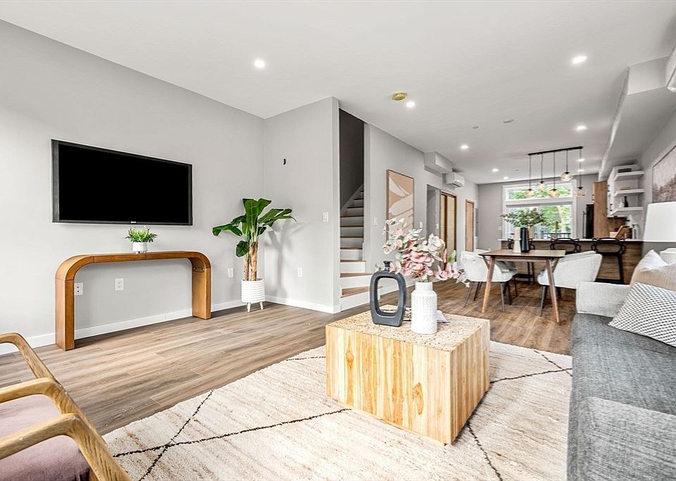 Don’t miss this stunning BRAND-NEW CONSTRUCTION townhouse! This 3-bedroom, 2.5-bath home is thoughtfully designed with an open floor plan that seamlessly blends style and functionality. The main level offers plenty of room for a formal dining area and a spacious living room. The contemporary kitchen stands out with its custom pot filler, sleek finishes, and a peninsula perfect for casual dining. Step outside to enjoy a private deck off the back, ideal for relaxing or entertaining. The second floor features two generously sized bedrooms and a beautifully designed full bathroom. The third floor is dedicated to the luxurious primary suite, which includes space for a king-sized bed, an office/den, and access to a private balcony with breathtaking city views. The ensuite bathroom boasts a custom shower stall and a large walk-in closet, creating a serene retreat. This unit also includes garage parking and a private paver patio! Near Nubian Sq, South Bay and everything Roxbury has to offer!