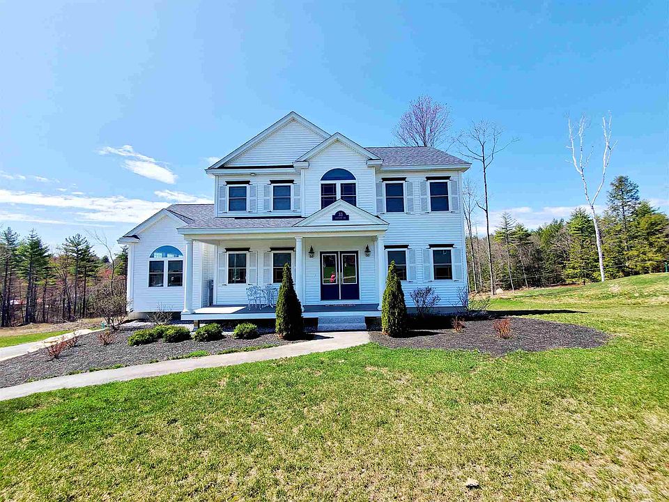 Welcome home to this newly constructed chic colonial. Located at the newly developed Cortland Estates in Weare NH on 1.304 Acres . This 2248 Sq. ft Colonial with a 2 car drive under, Front Farmers porch and over sized 16x16 composite deck sits at the beginning of the subdivision on a cul-de-sac with breath taking views at the top. As you enter the double front doors you can feel the open concept, the first floor includes 9 ft ceilings, a spacious family room which opens into a large custom kitchen. Kitchen has 42" cabinets, soft close doors & drawers, stainless steel appliances including a brand new 36" gas stove and LARGE industrial size fridge and 7ft island all with Marble counter tops through out, great for your family's next gathering. A warm Bella Cera Hardwood floors is on entire first floor. Laundry is located on the first floor, as well as a large Pantry and a 1/4 bath with tile floors. The open stairs case with hardwood treads takes you to the second floor which has 2 bedrooms, full bath and a master suite. The Master Bedroom suite has a large walk in closet and cathedral ceilings makes the Bedroom feel bright and spacious. The master bathroom has a never used Tile shower and soaking tub. Second floor includes Bella Cera Hardwood in the master bedroom and master closet and carpet in all bedrooms and tile in all baths. This stunning home is fully equipping with an on demand hot water heater, Central AC and irrigation for the front and rear yard.
