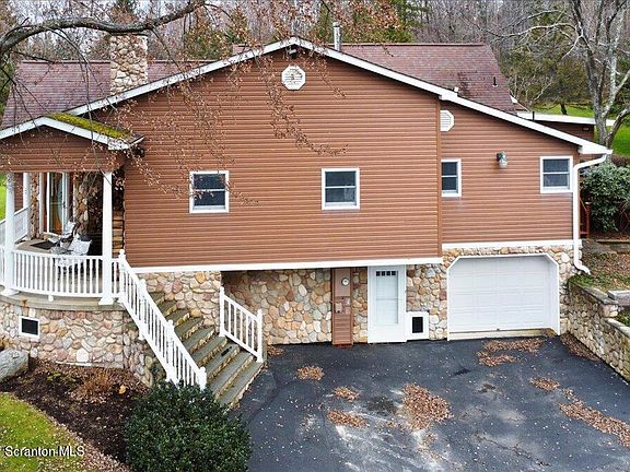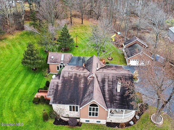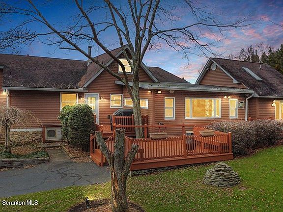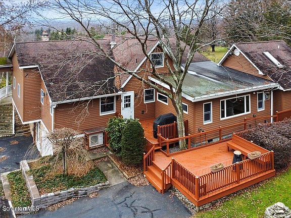 Step into your future oasis with this captivating 4-bedroom, 4-bathroom sprawling raised ranch! Situated on 1.4 acres of picturesque land, this property boasts both space and privacy. Conveniently located mere minutes from the Montdale Country Club and Lakeland High School, with easy access to Interstate 81 and just 20 minutes from Downtown Scranton.Upon entering, you're greeted by a charming front porch that offers a spectacular view of the surrounding mountains--a perfect spot to unwind and catch the evening sunset.Inside, the heart of the home reveals a stunning kitchen featuring exquisite bluestone countertops, custom oak cabinets, tile flooring, and a black walnut island. The living room, adorned with cathedral ceilings and expansive windows, invites the breathtaking beauty of the surrounding mountain views. Stay cozy in winter with a wood stove fireplace providing both warmth and cost efficiency. Above the living room, discover a loft with multiple storage areas, that can be used as an office or a craft room. The master bedroom, situated on its own side of the home, boasts two walk-in closets, a master suite bathroom with a walk-in shower, and its own private deck. 3 additional bedrooms on the main floor share access to another full bathroom. End your day by unwinding in the indoor hot tub room with a 4-person jacuzzi, featuring a skylight and its own full bathroom. Multiple decks surround the home, providing various spots to observe the beauty of the property.Unique to this property is a separate living quarters located downstairs, offering versatility for guests or in-laws. The lower level also houses a 2-car garage, multiple storage rooms and coat closets, and a separate living area.The backyard is a haven of beauty, landscaped to perfection. Enjoy outdoor time with friends and family on multiple decks, and watch the kids play on the custom-built playground. Behind the home is a separate 2-car garage with a loft.