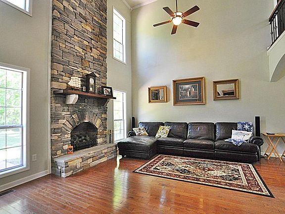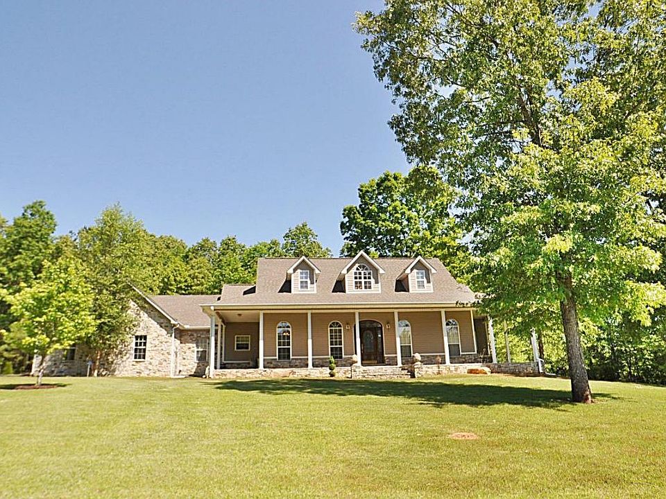 Peaceful and out of the way country setting with beautiful home - features large open eat-in kitchen w/stained cabinetry; stainless appliances; family room w/soaring ceiling and stone fireplace; two main-level bedrooms; two upstairs bedrooms; basement level offers option for finishing out space; all with 19+- acres. All information subject to verification.