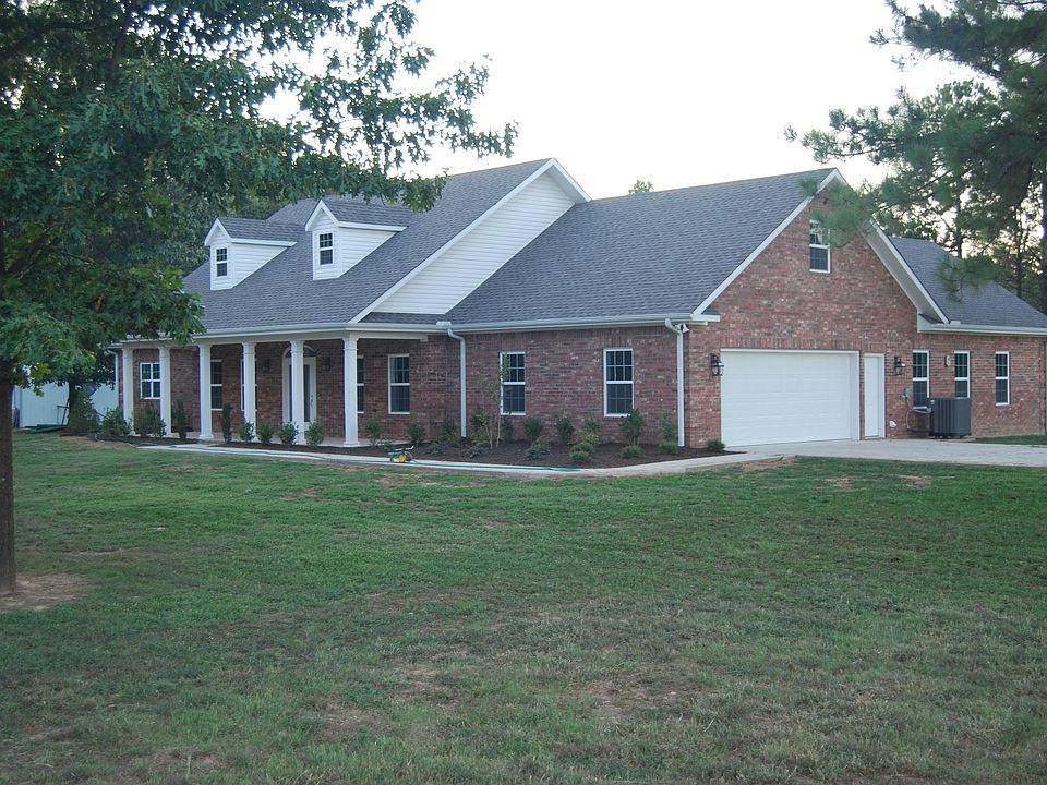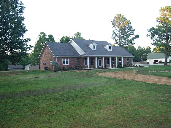 Wonderful new all brick home 3200 sq ft including bonus room in great neighborhood. This home is built well, including 6" walls for insulation effeciency and trusses in the roof for superior strength. The kitchen has tons of cabinets, solid surface counter tops, stainless appliances that includes a double wall oven, an island cooktop (gas) with stainless drop down vent-a-hood, dishwasher, microwave, and refrigerator. The spacious living room features a tray ceiling, a large gas log fireplace, and French doors leading onto a covered porch. The large master suite has a fully concreted safe room, whirlpool tub, separate vanities, and a walk-in tiled shower. It also has a guest bedroom with private bath! Two gas tankless water heaters provide an efficient, unlimited amount of hot water. There is a 500 gallon underground propane tank. Large covered front and back porches. The 5 ton electric heat pump along with the additional insulation in the 6" walls makes for very reasonable utility bills. The unique floors are polished concrete.