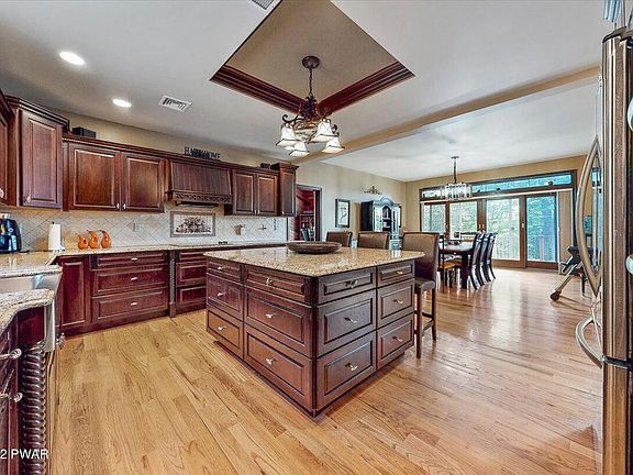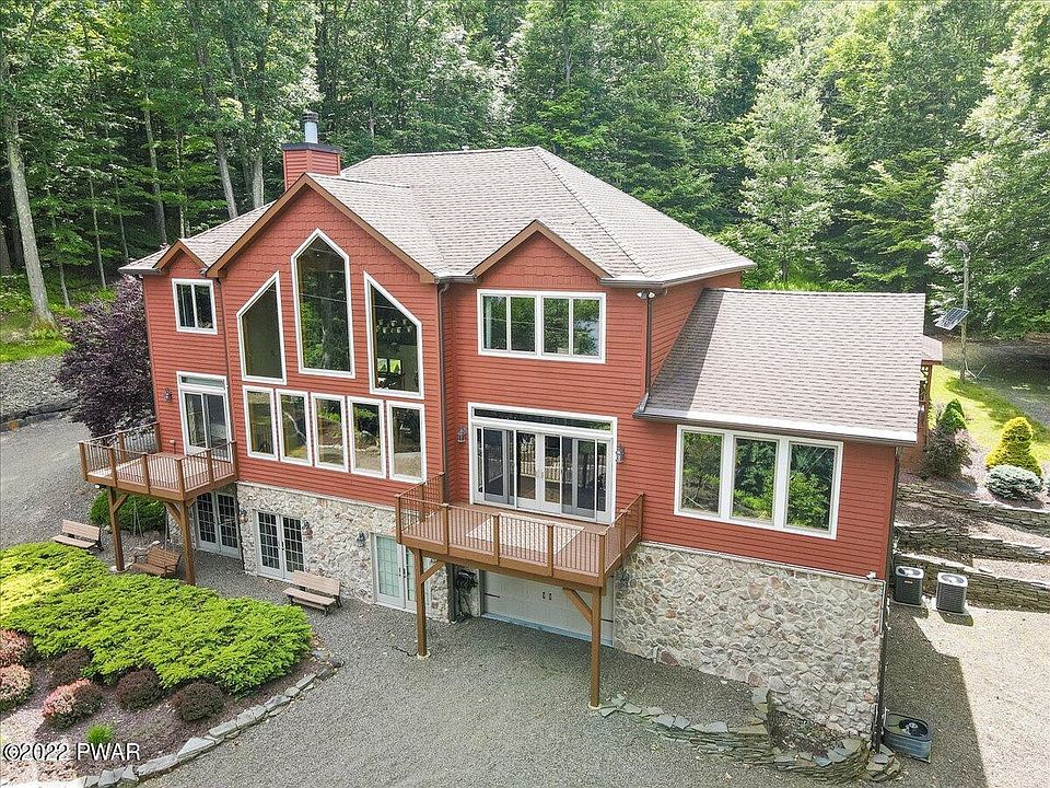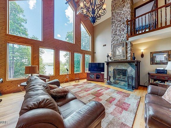 Custom built home with long views of Lake Wallenpaupack from many rooms. Tremendous stone work and path down to lake with ponds, waterfalls, resting areas. Cedar sided, huge lot with backyard for family fun. Hot tub on deck area, multiple garages for your toys, seclusion from other homes. Drive down to lake with your golf cart or side by side, or walk the Fantastic stone walkway. Access to 350 acres of woods behind house. Security camera's Parking for all your family and friends. Move your family in and enjoy all this Lakefront lake home has to offer!Link to Short Video of lakefront.https://www.facebook.com/162803623743986/videos/1675653202459013/, Beds Description: 2+BED 2nd, Beds Description: 1Bed1st, Baths: 1 Bath Level 1, Baths: 1/2 Bath Lev L, Baths: 2 Bath Lev 2, Baths: Modern, Eating Area: Ultra Modern KT, Eating Area: Formal DN Room, Eating Area: Dining Area