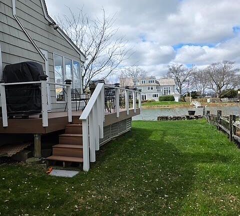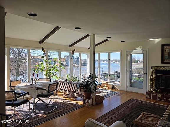 Spend the summer on the water in Lucas Point, a private association with it's own beach. This casual home has water views from most rooms as well as a private dock. Have breakfast on the waterfront patio and dinner on the deck overlooking the cove. Wonderful open, sunlit living room with fireplace and large windows. Primary suite, 2 double bedrooms, 1 single bedroom and 2 baths make up the second floor. Ramp within the garage for easy disability access into the house.Flexible term. Can rent for 1 or 2 months.
