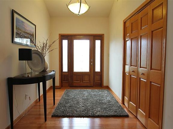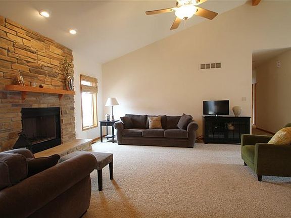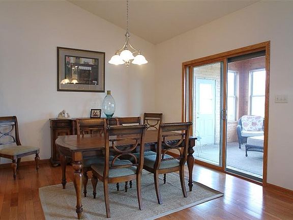 AWESOME WALKOUT RANCH ON POND! Enjoy sitting in your 3-Seasons Room overlooking stocked pond--you can even add your own dock. Enter the large foyer with hardwood floor. Proceed to the beautiful, spacious Great Room which features relaxing views of pond, a stone floor to ceiling fireplace, and cathedral ceiling. The Great Room is open to the kitchen and dining area. Breakfast bar plus an island enhances this kitchen which has an abundance of custom oak cabinets. Bosch stainless steel stove with convection oven, microwave, and dishwasher are included plus Amana refrigerator. Hardwood floor is in the dining area which connects to a lovely 3-Seasons Room accented by pine cathedral ceiling. Main floor has 3 spacious bedrooms and laundry room. Wake up to pond views in the master bedroom which includes a trey ceiling and bathroom with a whirlpool tub and separate shower. The walkout out basement offers 2 bedrooms, full bathroom, a second kitchen, and large rec room--ideal for related living.