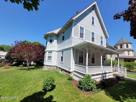 Beautiful Victorian well cared for on a quaint Adams street near downtown. This home has been used as a single family residence, taxcard represents duplex style property which would need some work/egress to qualify.1st floor hosts a large kitchen, 1st floor bedroom with a large closet and gorgeous hardwood floors, 1st floor laundry room, a full bath, a large formal dining room, a spacious den and large front living room. 2nd floor hosts three bedrooms, common rooms, dated kitchen & pantry, a full bath with claw-foot tub. 2nd floor has access to a walk up attic for great storage. Basement access in rear common hallway. Two sitting porches, vinyl & wood windows. Slate roof, oil fired boiler (2013), 200 amp service. Knob-&- tube wiring present, reflected in the pricing of this property.