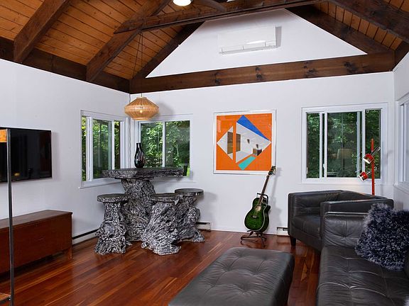 Tranquility at its best! This contemporary style 4 bedroom/2 bath cape is tucked away on 1.8 acres. Yard is vast & flat, perfect for adding an in-ground pool. Delightful hot tub nestled among pine trees. Access to hill for wintertime sledding. Unique beamed ceilings in most rooms. Hardwood floors. Fully applianced updated kitchen with dining area. Large family room that opens to an enjoyable deck for entertaining. Updates include new roof (2016), heating and cooling units throughout (2015), new natural stone staircase from driveway to front door (2017) and new high efficiency windows on main floor (2018) and more. Comprehensive dehumidification system in basement. Close to schools, shopping, restaurants. Golf course & Rte 9. Minutes away from the Poughkeepsie train station. Make this quiet mountain lodge your home & experience tranquility of a forest refuge without leaving town. Come see this awesome home and you won't be disappointed!