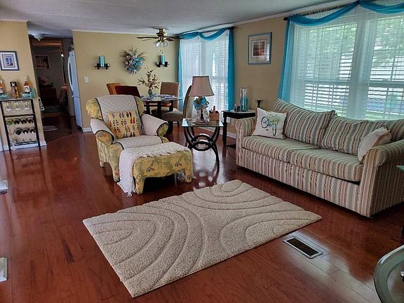 This 1172 sqft cozy mobile home nestled in a quaint 55+ community features 2 bedrooms, 2 bathrooms, and an open floorplan. A spacious 8'x24' Carolina Room was added as a bump out and is open to the Livingroom/Dining room combo. The galley kitchen includes a refrigerator, stove, oven, microwave, and washer & dryer. The seller will be taking the current washer and dryer and replacing them with another used model. A space and hook ups are available for a dishwasher. A roomy 8'x16' deck adorns the front of this home and a 10'x10' deck was added to the side. A 9'x8' storage shed in the back yard is included. Furnishings are negotiable. Ths community offers a beautiful pool, a clubhouse, and a very active social club. Captains Cove in Murrells Inlet is just a stone's throw from the old fishing village that sits along the Marshwalk. Located between Charleston and Myrtle beach, this area offers golfing, fishing, dining, shopping, year round festivals, Brookgreen Gardens, Huntington State Park, and a slow paced life. Y'all will love it!