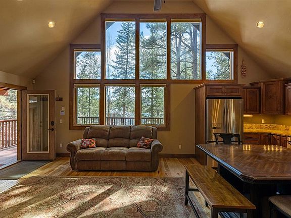 Are you in search of a home that breaks away from the ordinary? A residence with character and distinctive charm? Your search ends here! Nestled within the ponderosa pines, this unique property transports you to a Colorado-inspired haven. The entire neighborhood is tucked away in the trees, providing an idyllic backdrop for your lifestyle. As you approach this home, a private entrance discreetly veiled from sight sets the tone for unparalleled privacy. Picture yourself unwinding on the back deck, savoring the aroma of a barbecue, and relishing the soothing rustle of leaves in the treetops. Beyond a mere dwelling, this home has undergone a comprehensive transformation over the past 5 years. Enter through the front door into a welcoming expanse of an open living room and kitchen, showcasing vaulted ceilings and an expansive wall of windows that effortlessly merges the indoors with the surrounding nature. The meticulous craftsmanship shines through with knotty alder kitchen cabinets and sculpted tongue and groove 3/4" hardwood floors spanning the main level. Energy efficiency is enhanced by Thermopane windows, while the choice of solid alder for all trim and doors adds a touch of elegance. Entertaining is a breeze with two distinct gathering spaces, one on the main level and another on the ground floor. The lower level offers a 4th bedroom plus a living room and wet bar that exude warmth with accents of northern white pine wood, creating a cozy retreat. Open the sliding glass door in the summer to invite in the crisp mountain air or go directly into your backyard oasis. Lastly, parking is never a concern, with ample space for your vehicles and outdoor toys that come with the territory of living in Colorado. A designated gravel pad awaits your RV, completing the package for those seeking a home that not only boasts unique character but also seamlessly integrates the natural beauty of its surroundings into the everyday living experience. Welcome to a home that transcends the ordinary, offering a lifestyle where every detail reflects the spirit of Colorado living.