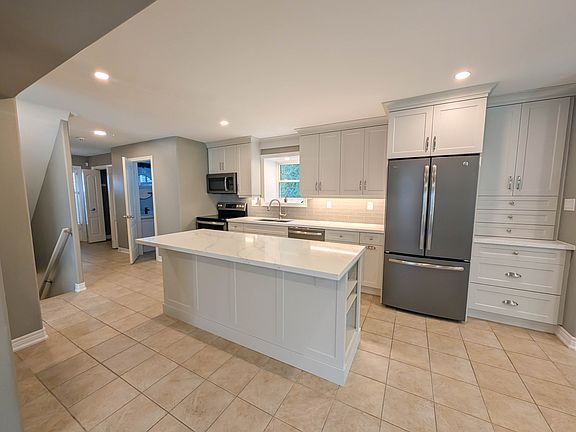 Open-concept kitchenStainless steel appliancesCenter islandTons of cabinet spaceDining areaLarge living spaceLots of natural light