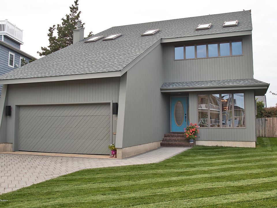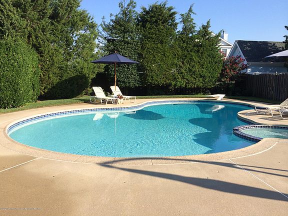 Cool contemporary architecture displayed is in this pristine house... Eat-in kitchen with views of the cove... Spacious open living dining with stone fireplace and lots of glass windows showing oversized and private back yard with in-ground Sylvan pool... Downstairs bedroom, bath, laundry and two car garage complete the first floor... Second floor features large expansive master suite with attached bath including jetted tub, separate shower, and double sinks plus huge walk-in closet. Two more ample bedrooms and bath with tub and shower complete the upstairs.