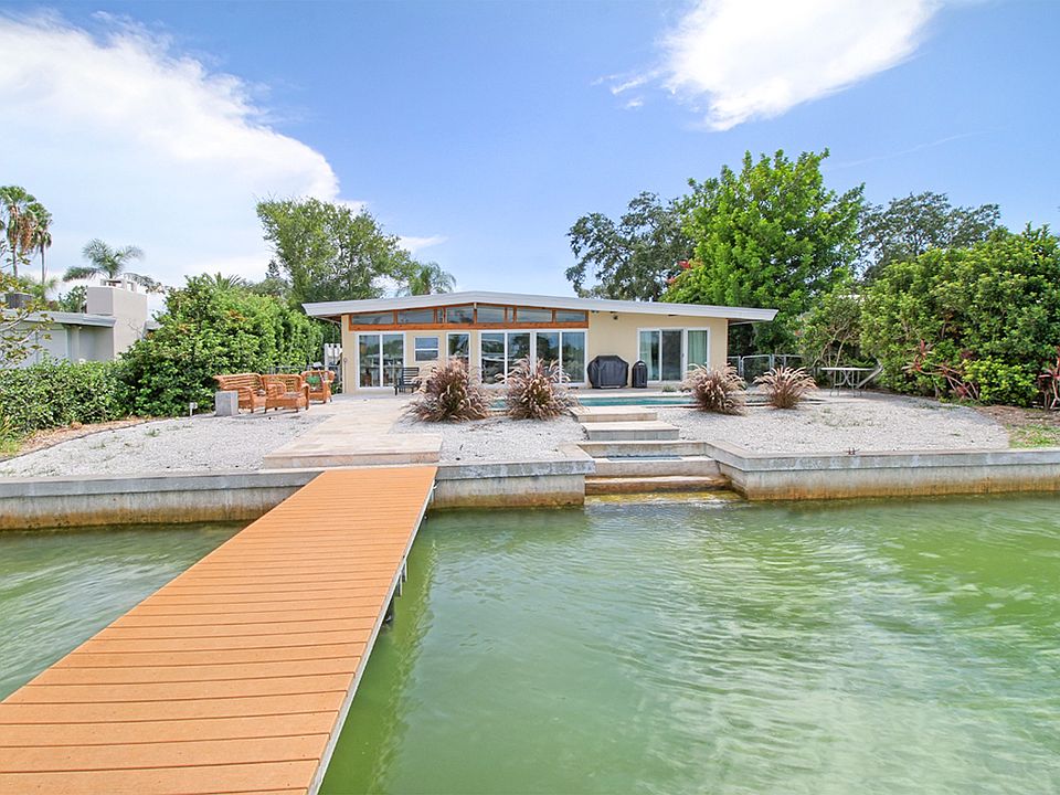 Modern and updated waterfront pool home on Paradise Island! Sellers are relocating for work after just putting the finishing touches on this exclusive home! New high quality hurricane sliders and windows maximize the waterviews from almost every room. Open floor plan with a remodeled kitchen, stainless steel appliances and granite counter tops. White wooden vaulted ceilings throughout and new porcelain tile floors looking like wood. Home office that could easily be utilized as a 4th bedroom and overlooking the water. Paradise is also outside with a long saltwater pool for laps with multi-colored LED lighting, therapeutic jets and fabulous travertine tiles surround the patio. The sea wall has convenient steps down to the water. Large canal with deep protected sailboat water. New lift 12,500 lb and dock where you can enjoy the fabulous sunsets. A few minutes to the open water and the beach.