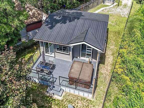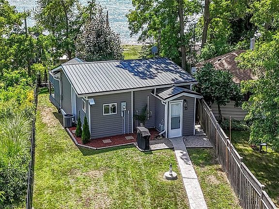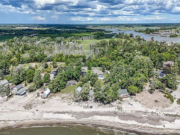 Presenting a stunning four-season Lake Erie home/cottage offering the perfect mix of comfort, investment potential, and breathtaking lake views. This home has received over $100,000 in upgrades in the last three years and is move-in ready. Featuring two bedrooms including a spacious master suite with patio door walkout to a lakeview deck plus a bedroom for guests. Enjoy a brand-new kitchen with granite countertops, marble backsplash, and $20,000 in premium stainless-steel appliances including a stackable washer & dryer. The bathroom has elegant porcelain tiles and a glass-enclosed shower with a rain shower head. Comfort is ensured with forced air furnace, central air-conditioning and efficient radiant heat drawn from the hot water tank into the furnace. Additional improvements include a new 200-amp electrical panel, natural gas hookups, lake-fed seep well, a2000-gal water cistern, 2000 gal holding tank, an insulated crawl space, and attic storage. The exterior features include a glass-railed deck with a comfortable seating area, views of the lake, a premium 2021 Grizzly hot tub from Arctic Spas, and a fully fenced yard. Enjoy deeded access to a private sand beach just steps from the property, including a parking space. The Port Maitland pier/lighthouse, marina, sailing club, golf club and public boat launch are all within walking distance. Enjoy all that the Lake Erie lifestyle has to offer; great fishing, bird watching, boating, watersports, bonfires, beautiful sunrises & sunsets or just leisurely strolls along the shoreline. Dunnville’s amenities and the hospital are about a 10-min drive. Hamilton, Niagara or Toronto are about 1 to 2 hour commutes. For builders or those dreaming bigger, the sale includes previously home plans for a brand-new dwelling with a walkout basement and garage. Whether seeking a personal retreat, an income-generating property, or an optimal site for custom construction, this lakeside residence delivers versatility and value.