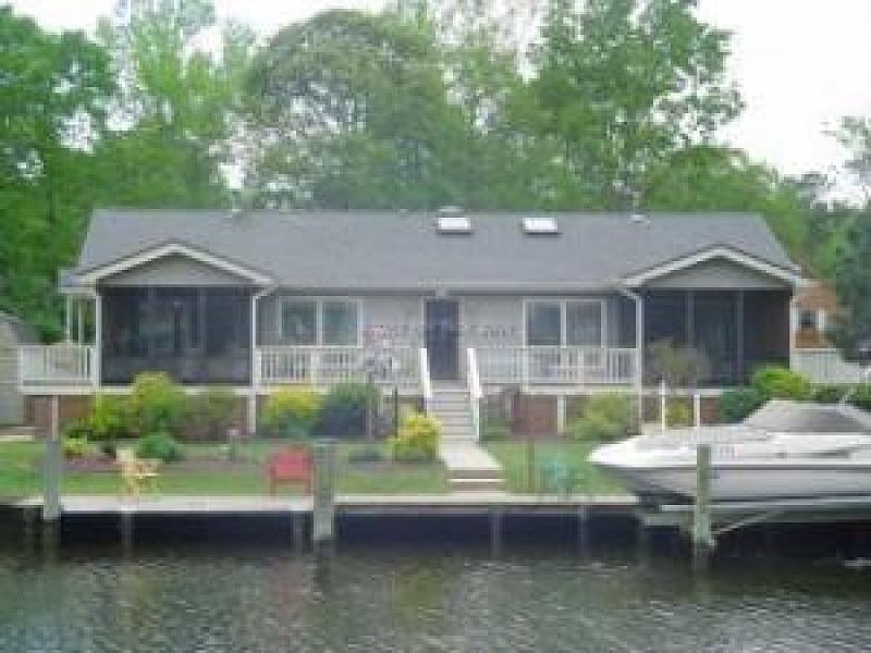 This is one of a kind water front in Ocean Pines, Maryland. It's like buying 2 homes. There are 3 bedrooms and 2 baths on one side and 3 bedrooms and 2 baths on the other. Total of 6 bedrooms and 4 baths. Great for 2 family or friends to buy at a reasonable price to split. Could also be in-law suite. Both with full kitchens & vinyl porches. In Immaculate shape. Boost Pride of ownership. 88 ft of waterfront. 10,000 lb. boat lift. Easy direct access to the bay. Only one HOA fee and one tax bill