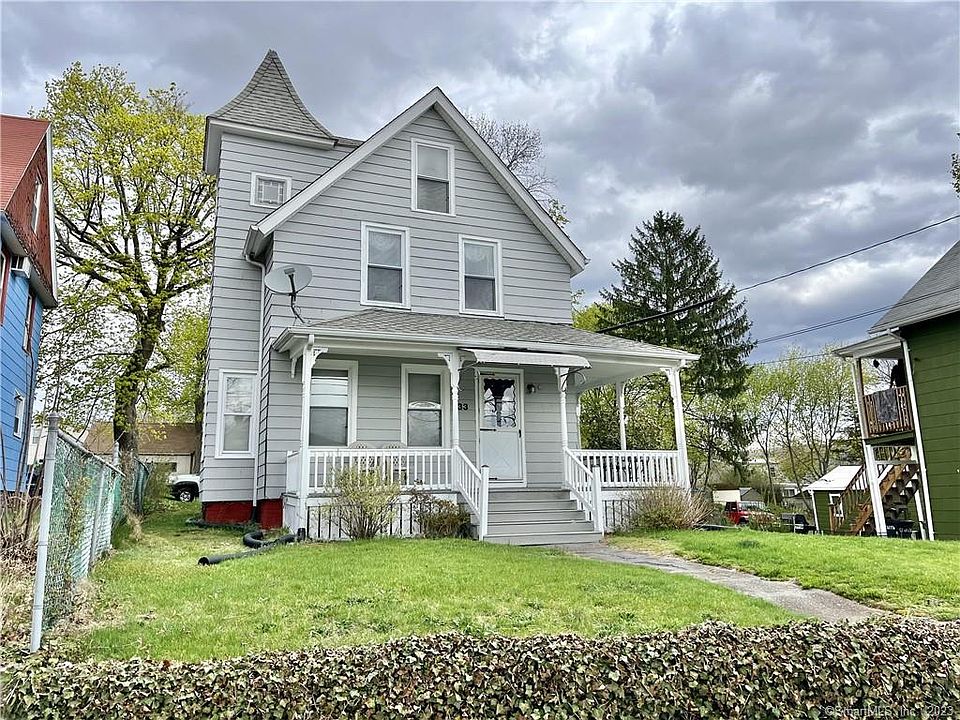 Carefully maintained two-family property in desirable and convenient location. Classic colonial farmhouse architecture has been preserved including woodwork, covered wrap-around porch and turret above staircase to third floor. Lower unit includes entire ground floor. Upper unit consists of middle level and finished third floor. Plenty of room in each unit for home office space. Perfect rental investment or owner-occupied property with one tenant to help cover expenses. Sale is contingent on seller finding suitable housing.
