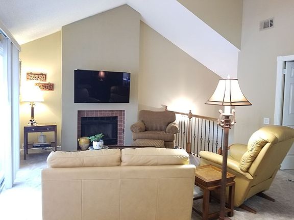 This end unit has a view of the woods and lots of light. The flat is on the second floor with a 400 sq ft. deck. A new deck was installed in 12.23.