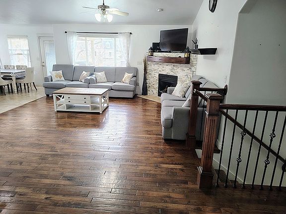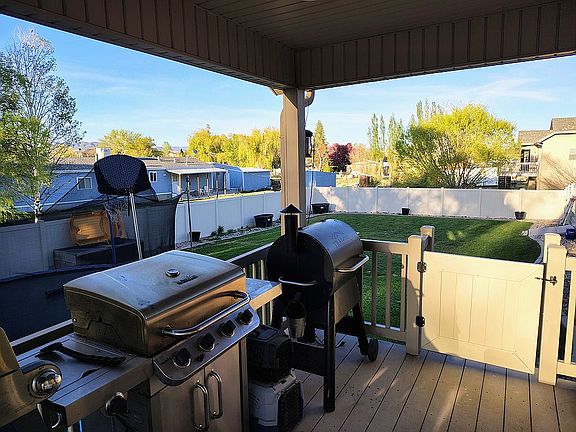 Beautiful home in Bonnie Lass Subdivision, Nice open floor plan. 6 beds 3 baths with master bedroom on main level. Kitchenette downstairs that's awesome on movie nights, Smart thermostat and sprinkling system. Upgraded on demand water heater. Gas plumbed to kitchen range and dryer. Garage has been insulated. Cozy covered deck with privacy vinyl fencing. RV parking on East and West side of home. Large finished shop on East side of home. Shop dimensions: Door 15' 10" x 11' 10". Shop 21' x 35'.