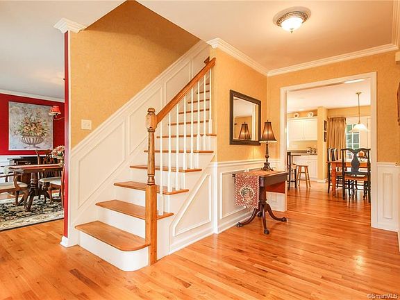 Rarely does a home come on the market in the sought-after Eagle Meadow subdivision, consisting of only nine lovely homes! This stately Colonial has been thoughtfully situated back from the road, at the end of a cul-de-sac. The beautifully landscaped 1.90 acre lot offers a private rear yard, which is ideally suited for a future pool addition! Boasting nearly 3,000 square feet, this wonderfully appointed home offers gracious ceiling crown moldings, wainscoting, a whole house wired sound system, ceiling paddle fans plus hardwood floors. From the inviting spacious entry foyer, French doors beckon you to enter the formal living room. Enjoy entertaining your guests with candid conversation in the formal dining room. An open floor plan encompasses the fully applianced kitchen with breakfast island, a separate eating area with an atrium door leading to a large deck, a one- half bath, plus a pleasing family room adorned with a wood- burning fireplace. The second floor boasts a large hall landing housing the laundry area plus full walk- up attic access. The spacious master bedroom offers a walk- in closet, a whirlpool master bath along with a separate shower, and a double sink vanity. Three additional bedrooms, a huge bonus room, plus a hall bath complement this family home. A full walk-out basement, Central Air, plus a two- car attached garage, are bonuses! Its ideal location is convenient to the North Madison Circle shopping center, and just minutes to Town, beaches, and rail!