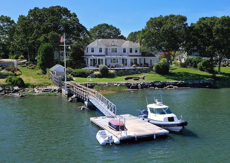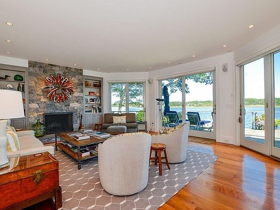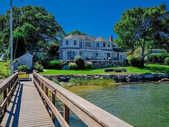 Step inside this stunning waterfront home with private dock on Planting Island! Newly and extensively renovated, this home boasts nothing but high-end finishes and amenities. The modern open layout includes a gourmet kitchen with Miele and Sub-Zero appliances, custom cabinetry, and center island, leading into the informal dining area as well as the living room, boasting a wall of sliders that flow out onto the 900 sq. ft. deck. The first floor also includes a cozy family room, 1/2 bath, mudroom, laundry room, bunk room and 2 car garage. This home is comfortably laid out with 4 bedrooms and 3 baths on the 2nd floor, including the large master suite with vaulted ceilings, walk-in closet, and custom-tiled bath with soaking tub. Also with a 95' private pier and over-sized float, boat house, outdoor shower, and custom stone fire pit. Set on .54 professionally landscaped acres, this property offers dramatic and unparalleled views of Planting Island Cove and conservation land from every room!