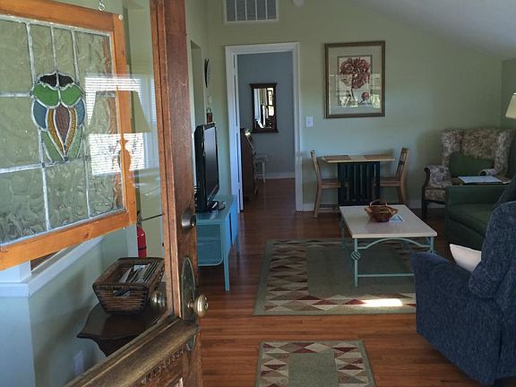 This charmingly decorated, sunny bungalow is a 10 minute walk on sidewalks to the heart of downtown Brevard or stroll on down to the Brevard Music Center. A private front patio and antique carved front door welcome tenants to a special place to relax and decompress.