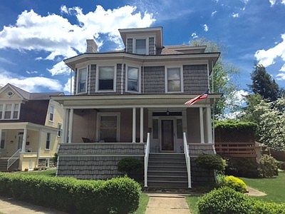 Enjoy sitting on the front porch of this grand Woodsdale home! Hardwood Floors, pocket doors, large eat-in kitchen, 2nd floor has 3 bedrooms and 3 full baths with laundry room, 3rd floor can be 4th bedroom or family room. Newly installed water heater. Roof, plumbing and breaker panel upgraded in 2015. Double Lot and detached garage.