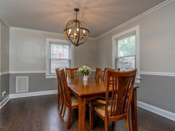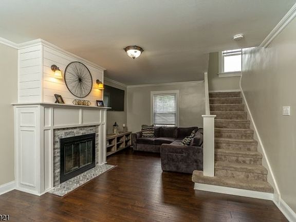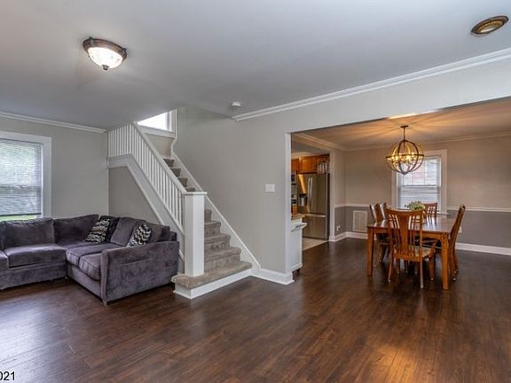 Welcome home to this 3 4 bedroom beautifully updated colonial just blocks from Cranford's bustling downtown and train! Open concept first floor features living room with fire place, formal dining room , beautiful kitchen with stainless appliances and granite counter tops and cozy den office with attached updated powder room with barn door. Second floor boasts large master bedroom, nursery WIC (can be converted back to bedroom), large third bedroom with ample closet and spa like bath with stall shower and soaking tub. Third floor has huge fourth bedroom with lots of storage. Basement is fully finished making for great family room and play area plus laundry room and storage. Extra large back yard with large paver patio and space for a pool! 2 zone HVAC, hardwood floors, detached garage and great location!