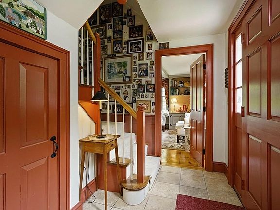 Quality construction,reproduction of the Israel Arnold House is the best of both worlds. Built in 1989 yet featuring up to 16" wide pine floors, latch hardware, eight fireplaces, three staircases, four bedrooms, a sitting room, library, dining room, living room which has massive hand cut wood beamed ceiling, two and a half baths, laundry room, and central vacuum. The gorgeous eat-in-kitchen features rustic beams and 16' of windows spanning the back wall, overlooking gardens and woods beyond. The kitchen's stainless steel appliances include a 48" Viking dual-fuel range, with two ovens, six burners and griddle, and a new dishwasher. The woodwork surrounding the fireplaces, and beamed ceiling are custom. Sited on1-1/3 acres with established perennial gardens, sprinklered front and side lawns, a picket fenced vegetable garden with tool shed, above ground swimming pool, two car detached garage/barn with new garage doors and an attached shed for mowers. Must be seen in person!