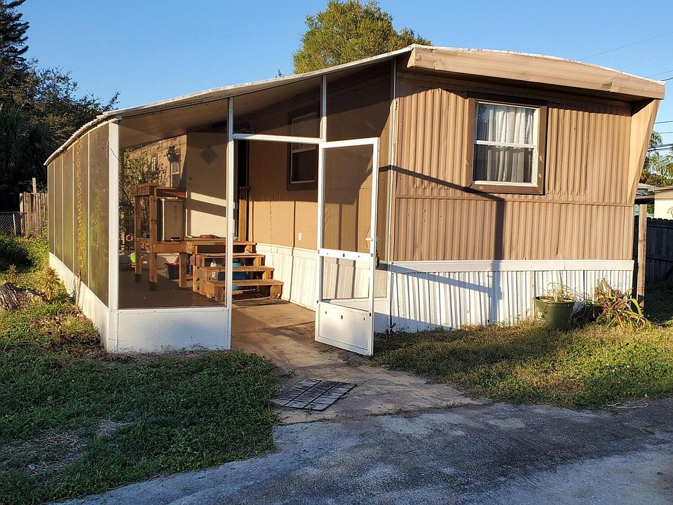 NO HOA & NO LOT rent. Conveniently located central West Melbourne close to Melbourne mall, shopping, dining, recreation and medical facilities. Screened in front porch with ramp access to front door. HWH 2016, updated electrical panel. Home needs TLC & repairs. Nice shed for storage. All personal property included. Roof is 08 but no leaks. Needs a new septic. Other major repairs needed are the bathroom, window frames, & areas of drywall.