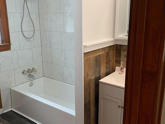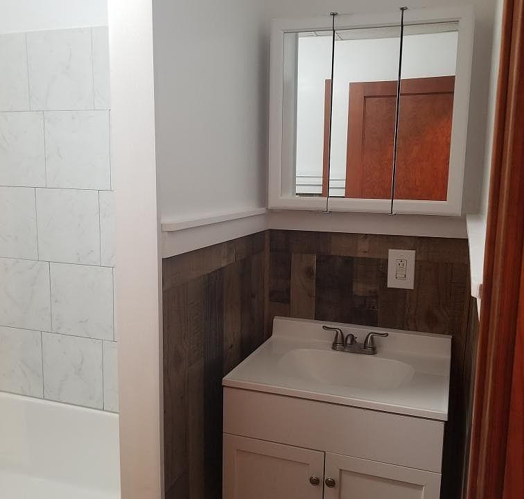 First floor. Large 3 bedroom. Brand new kitchen and bath. Stainless steel stove. Laundry hookups. Off-street parking. Owner pays for water and sewer. Tenant pays for heat and hot water. Oil heat. $38 application fee for credit and background check. $400 pet fee per dog. Maximum 2 dogs. Bank account required for automatic rent payments.