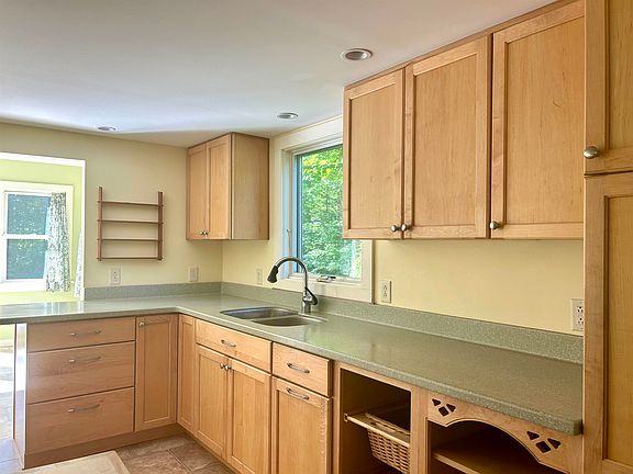Lovely 3 bedroom, 2 bathroom Cape on a nicely landscaped 1.2 acre parcel in Etna overlooking Mink Brook. The kitchen opens to the sunroom, with sliding doors to the back deck, a lovely a bright room! The first floor has a large living/dining room with hardwood floors, the sunroom and kitchen, bedroom, office and a large bathroom with walk in shower and laundry. The second floor has two bedrooms, an office and a full bathroom. The ceilings on the second floor are lower, around 6.5ft. The detached two car garage has plenty of space with storage above. A great home in a great location!! Open Houses Friday July 5th 2-4pm, Saturday July 6th 10am-12noon.